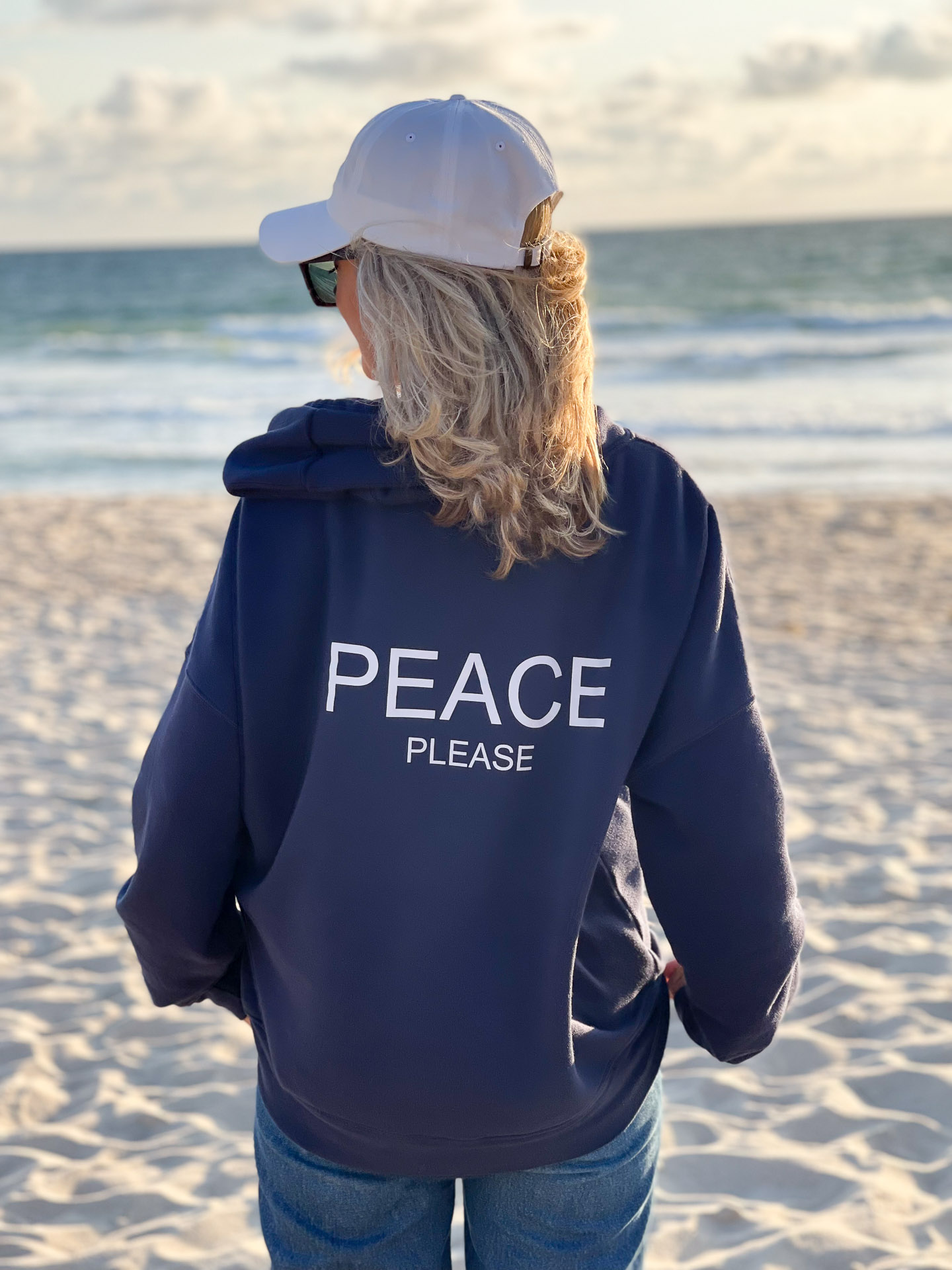 kuscheliger dicker Hoodie in Dunkelblau mit Peace Please.